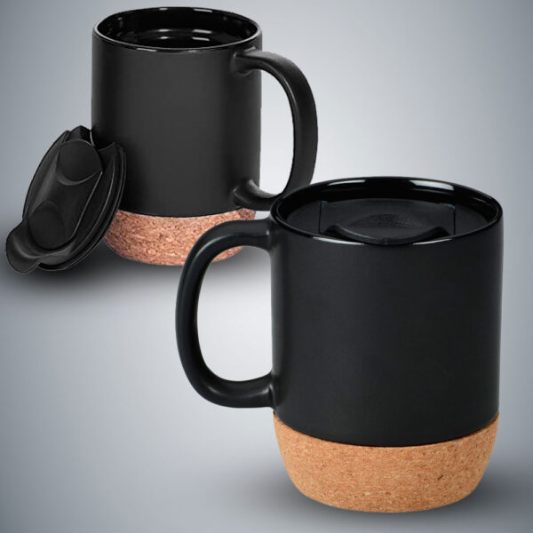 Tazón cerámico con tapa base de corcho, incluye tapa plástica libre de BPA.